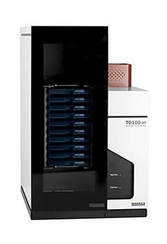 Thermal desorption (TD) uses heat and a flow of inert gas to desorb VOCs and SVOCs from sorbents or sample materials. Extracted vapours are swept onto an electrically-cooled sorbent-packed focusing trap, which is then rapidly heated. This injects the vapours into the GC in a narrow band, providing outstanding levels of sensitivity.
